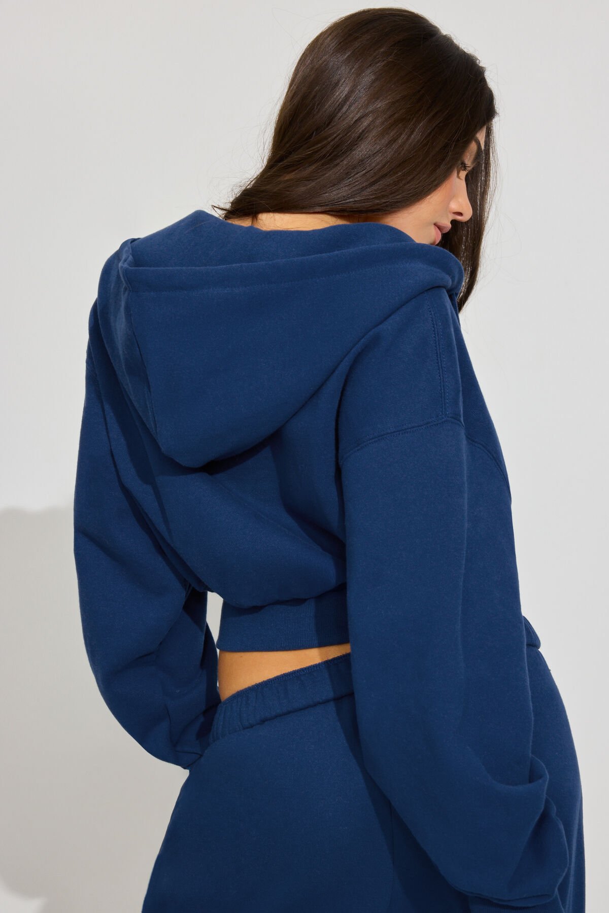 SoftTerry Bubble Zip Hoodie Navy women – Don’t sleep on a girl in a cropped hoodie and matching sweats ! Features Drawstring at hood Zip closure Kangaroo pocket Rib knit hem and cuffs Soft Terry lining Size & Fit Fit: Oversized Length: Cropped Model is wearing size S/M Materials & Care Content: 75% cotton, 25% recycled polyester Care: Machine wash, cold Imported